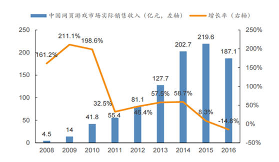 小编敢这么说,自然是有原因的。国内的H5游戏开发者其实都有一个共识:H5游戏若要像PC年代的网页游戏一样井喷,只有一个关键角色,那就是腾讯。在PC时代,网页游戏的市场规模从2008年的4.5亿元,一路飙升至2015年的219.6亿元,8年时间番了快50倍。其中很大一个原因在于,游戏运营商通过百度网盟等网页广告,用极其低廉的价格获取了大量的流量和用户。最关键的是,这种模式是完全可复制的,甚至直接照抄竞争对手的广告素材,都可以获得不错的用户转化。