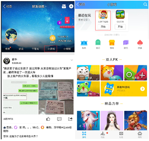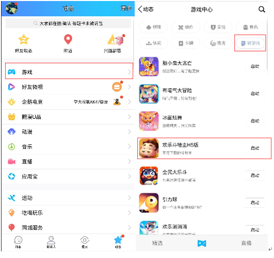 而在移动QQ和QQ空间,腾讯也针对H5棋牌游戏做了深入布局,在动态和QQ空间都分别加了游戏入口。